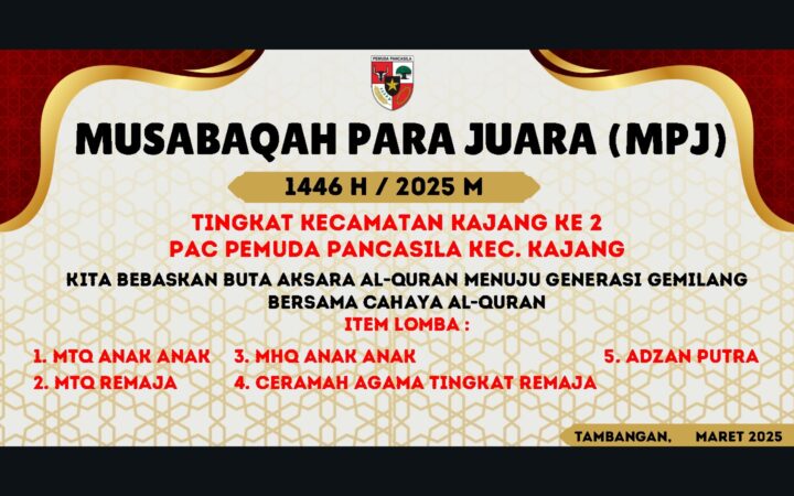 Bulukumba – Pemuda Pancasila Pimpinan Anak Cabang (PAC) Kecamatan Kajang menggelar Musabaqah Tilawatil Quran (MTQ) Para Juara pada Jumat-Senin, 21-24 Maret 2025.